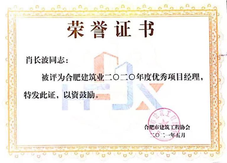 >2020年合肥建筑业企业优秀项目经理--肖长波