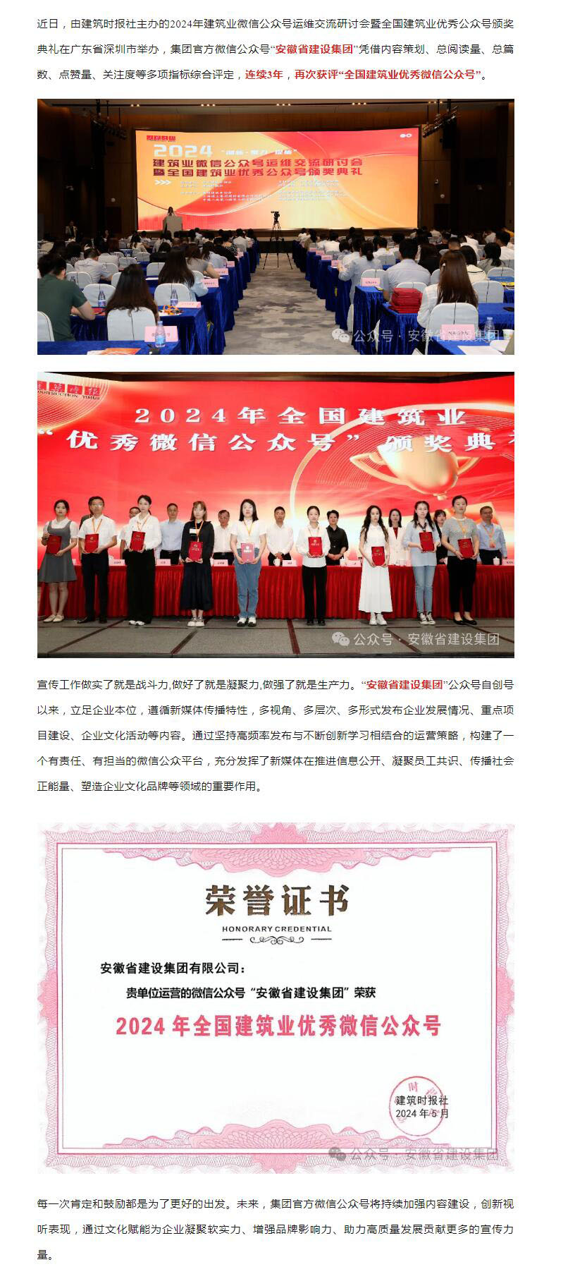 >集团微信公众号再获“全国建筑业优秀微信公众号”